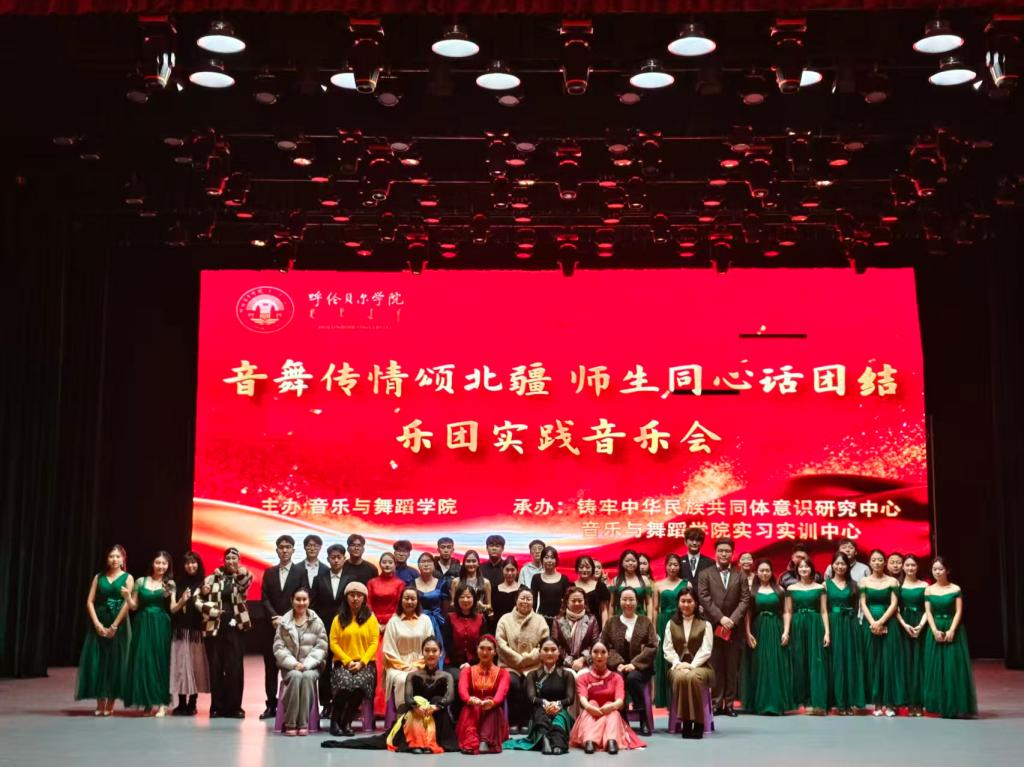 2025年11月6日晚,由音乐与舞蹈学院主办,铸牢中华民族共同体意识研究中心、音乐与舞蹈学院实习实训中心承办的“音舞传情颂北疆,师生同心话团结”乐团实践音乐会在艺术楼音乐厅精彩上演。