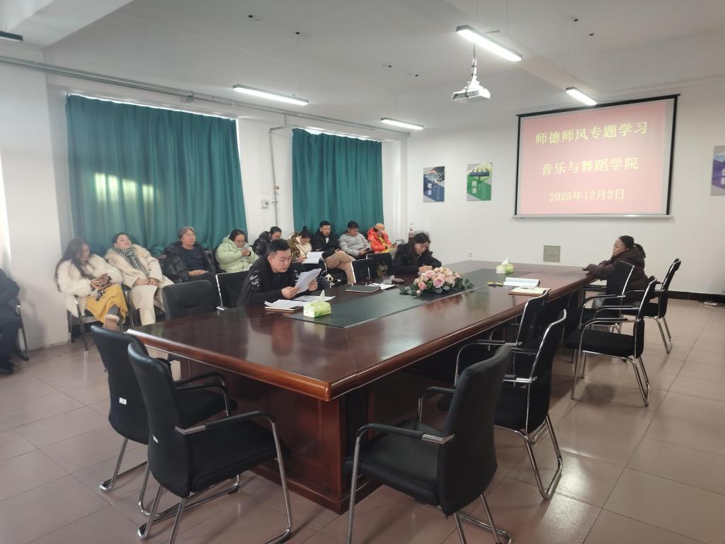为持续巩固深化师德师风建设成效,引导广大教师时刻自重、自省、自警、自励,坚守为党育人、为国育才的初心使命,12月2日,音乐与舞蹈学院召开师德师风警示教育专题会议,学院党委书记包德主持本次会议,学院全体教师参会。